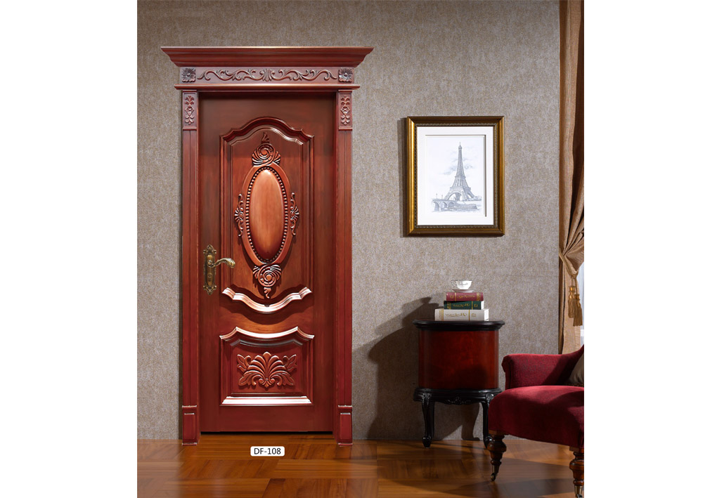廠價直銷愉心X-4060平開仿古雕花實木烤漆門